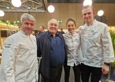 Avec Marie-Odile Fondeur ,directrice de la Fondation pour la cuisine durable by Oivier Ginon et une équipe joyeuse au Sirha.
