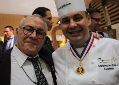 Remise d’un plateau en argent massif, prix de l’excellence pour Monsieur Paul pour le remercier de tous les efforts qu’il déploie pour la réussite du Bocuse d’Or sur le stand France Service Hôtellerie en présence des miss