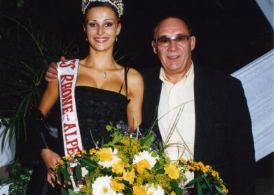 ( 12 ) Remise d’un plateau en Argent massif, du 1er prix France Service Hôtellerie à Monsieur Paul Bocuse en présence des miss et Eve Lopez