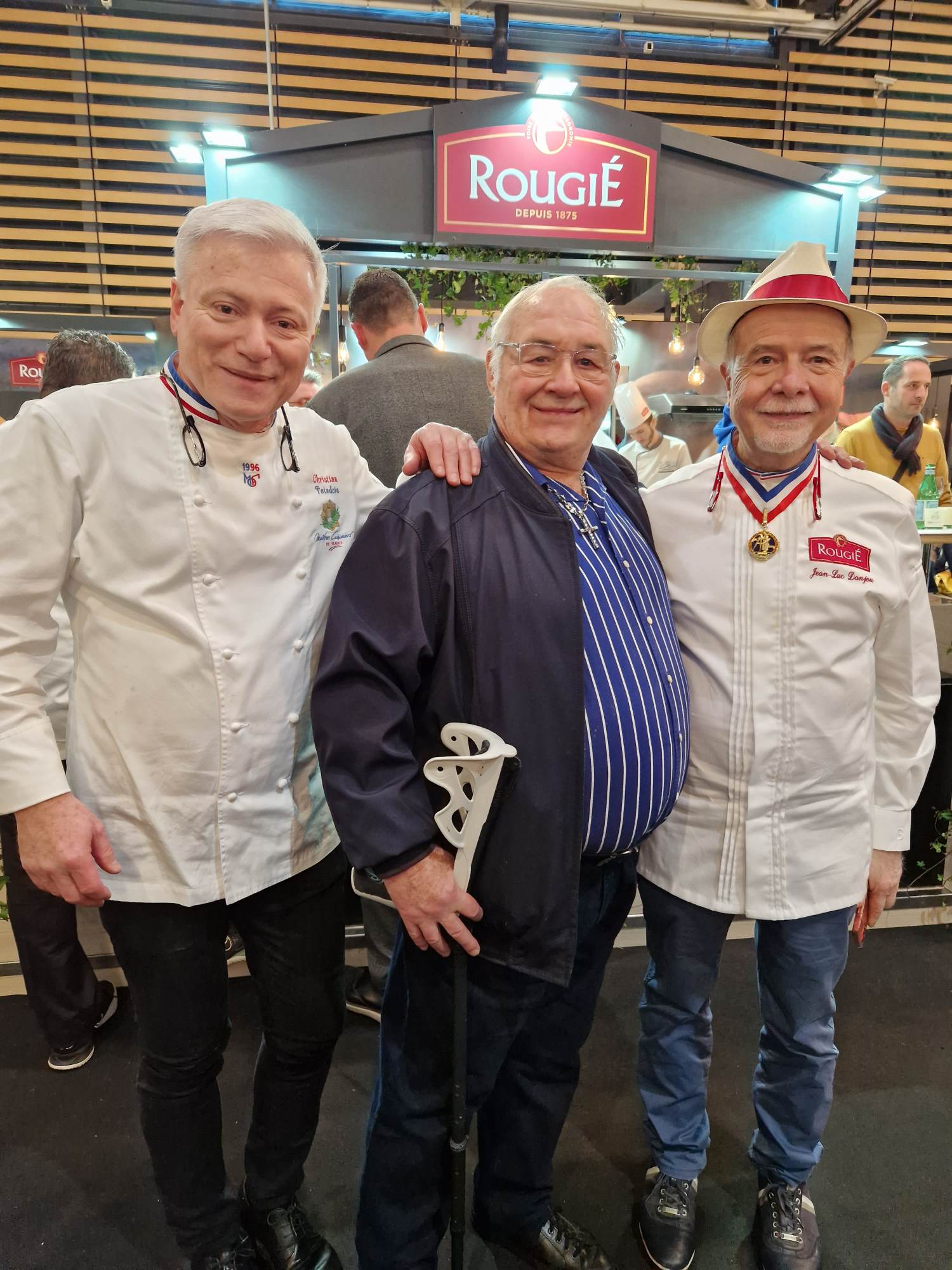 ( 1) Guillaume Gomez ex chef de l’Elysée multits mandats Gastronomiques ,Gabriel Paillasson MOF Pâtissier ,Chef Christian Millet MOF Président