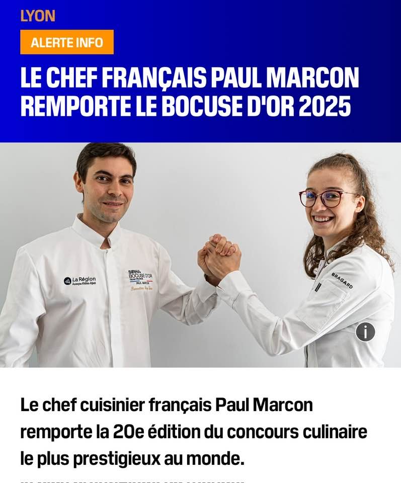 La grande messe de la Gastronomie avec les grands chefs et Guy Bardel (124) Philippe Gauvreau Chef Casino et Henri Roux chef étoilé la Pyramide(125) Soirée prestigieuse à l’Abbaye Paul Bocuse et les stars dont Clo clo et moi en haut au font à…(126)Paul Bocuse me Dédicace son livre Merci Mr Paul(127) Paul Bocuse Meilleur Ouvrier de France(128)Paul Bocuse MOF et Guy Bardel(129)Paul Marcon vainqueur Bocuse D’Or 2025 et sa commise Félicitations(130) Paul Bocuse MOF et Guy Bardel au Sirha(131)Paul Bocuse et mon Ami Roger Jaloux MOF chez Bocuse(132) Paul Bocuse et le gagant du Bocuse d’or au Sirha HYANS(135) Odile Mattei animatrice télé France 3 au Sirha adorable(136)Odile Matteî animatrice culinaire télé et Annie St adorable soirée Sofitel(138) Olivier Ginon Président du Sirah et Arlette Hugon avec Florence Guyot champagne Marguerite(139) Patricia et Eric Giraud maison Anthonin coquillage Halle de lyon Paul Bocuse(140) Nicolas Sarkozy à Lyon Dédicace son livre à Lyon pour GB Merci(141) Nicolas Porte Professeur de chant sans les Choristes et Guy(142)Notre ami Gilles Maysonnave Toques Blanches Lyonnaises et moi même(144) La cheffe Naîs Pirrolet Bocuse d’o et son Coacht +son commis(145) Monsieur et Madame Bernard Hôtelier Lyon centre(146) La cheffe Naîs Pirrolet Lyonnaise Bocuse d’0r et son coatch(147)OLYMPUS DIGITAL CAMERA(151 )Mon Ami Mario Barravecchia Chanteur et Dirigeant de Club(153) Mon ami Roger Jaloux Chef MOF déjeuner restaurant Fond Rose Caluire(154) Mon Ami Serveur le célèbre Charly Baby la Bastide Collonges mont d’Or 69(155) Mon amie chaleureuse Florence Guyot Champagne Marguerite Guyot sur son stand Sirha.(156) Mon Ami Nicolas Guillermin le Buddha-bar Pub Resto.Lyon(157) Meilleur ouvrier de France et chef étoilée 3 étoiles Georges Blanc(158) Mon Bar restaurant au Tonneau D’Or RV des artistes Lyon 2è(159) Maximme Caminalle Président du grand machon et Mado la Tornade blonde bouchon Lyionnais adorablePhotos précédentes4567Photos suivantes